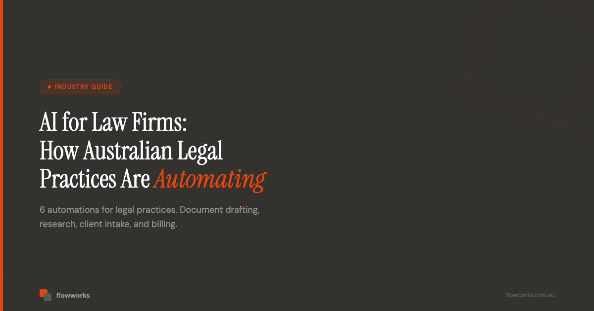 Law is one of the most document-heavy, research-intensive professions in Australia. Solicitors spend enormous amounts of time on tasks that are repetitive, structured, and rules-based. Drafting standard contracts. Reviewing lease agreements. Compiling research memos. Chasing clients for information. Recording time entries. These are exactly the kinds of workflows where AI automation delivers the biggest returns.